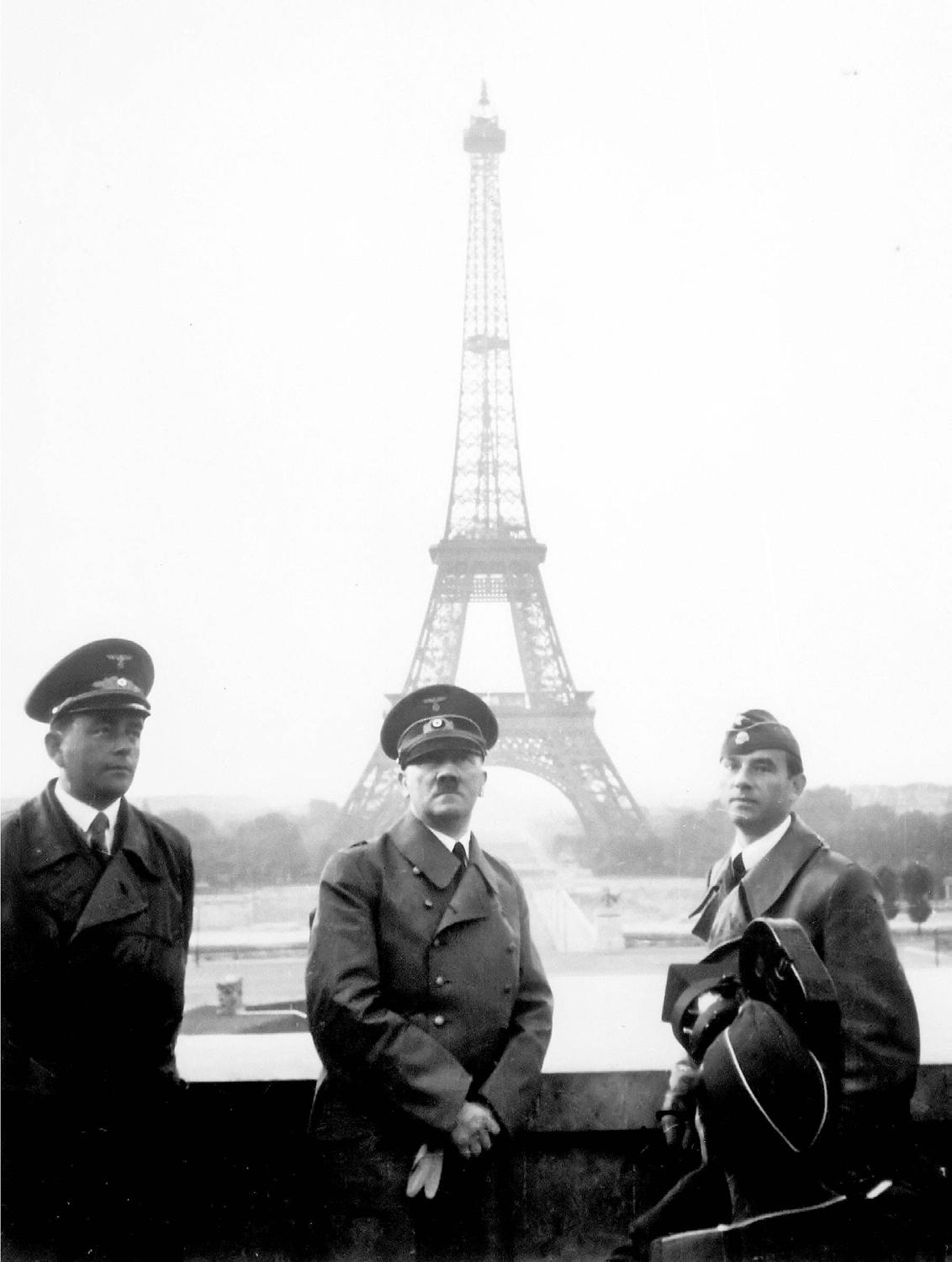 Adolf Hitler visits Paris with architect Albert Speer (left) and artist Arno Breker (right), June 23, 1940.