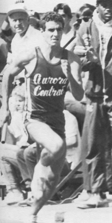 Aurora Central won the state championship in boys basketball in 1983, the same year the school won the team title in wrestling. Here an Aurora Central High player goes up for a layup against an Overland High School player.