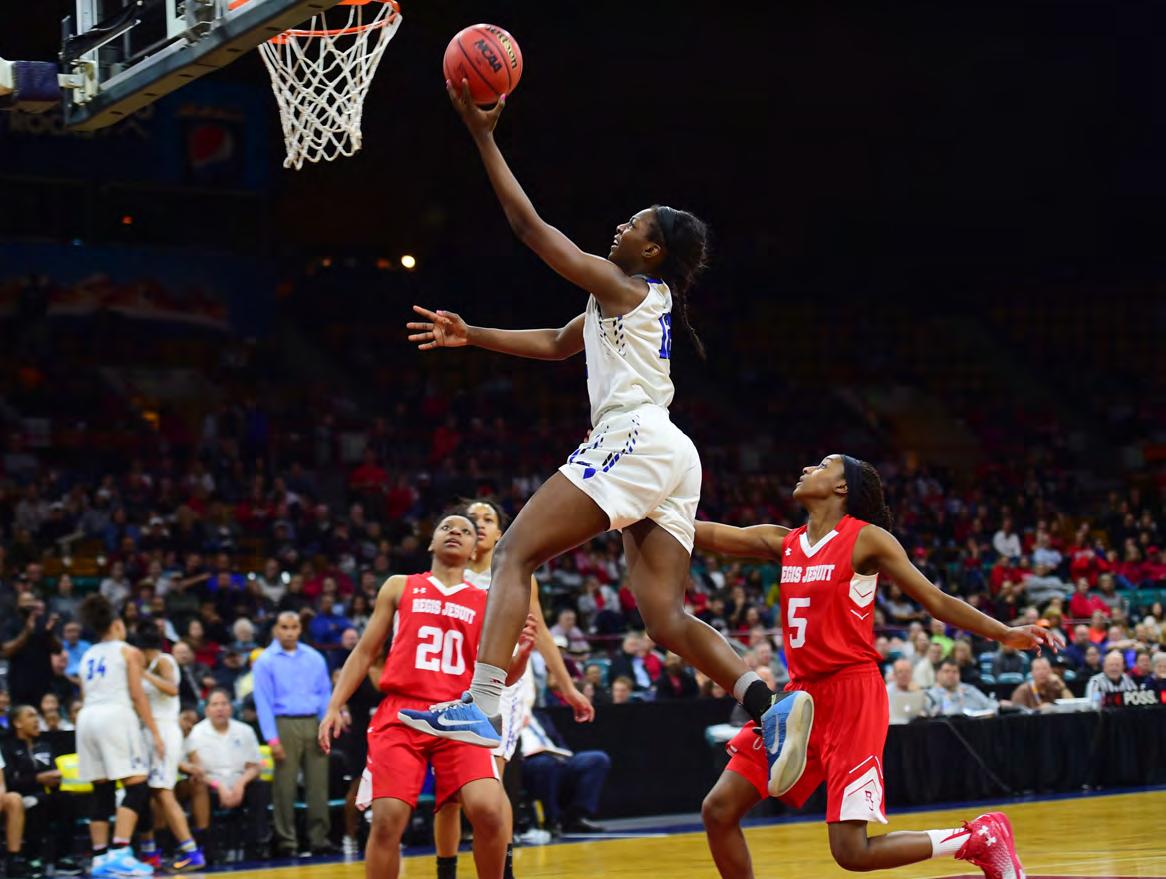 Onyenwere going up for a layup during a game against Regis Jesuit.