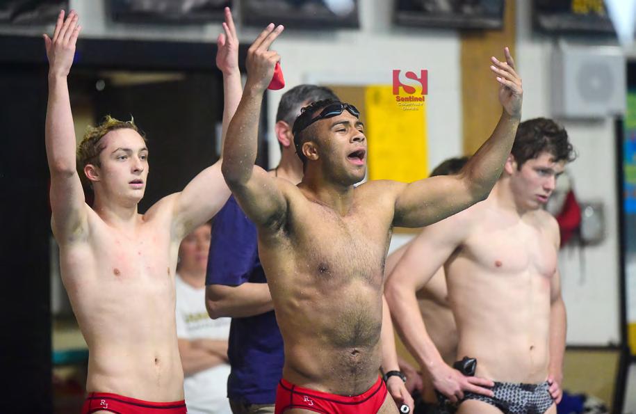 Members of the Boys Division swim team. The Regis Jesuit boys swimmers have won 22 state titles throughout history.