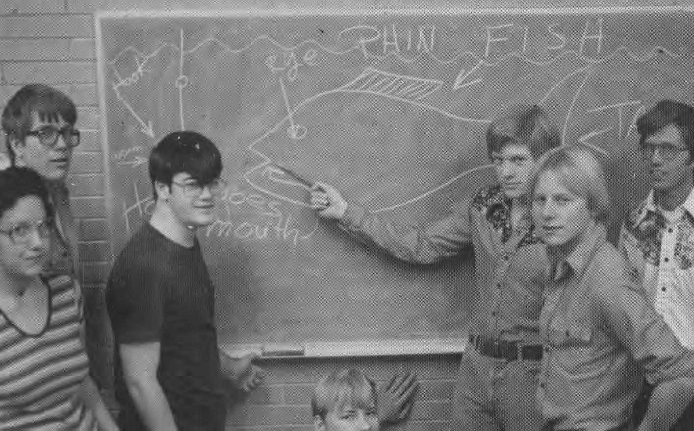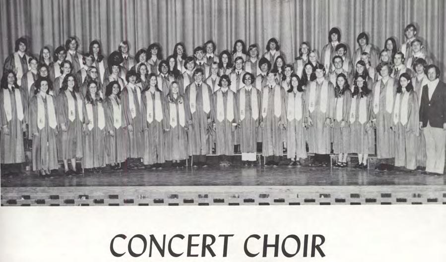 The 1973 Hinkley High School concert choir, adorned in concert robes, pose for their yearbook photo.