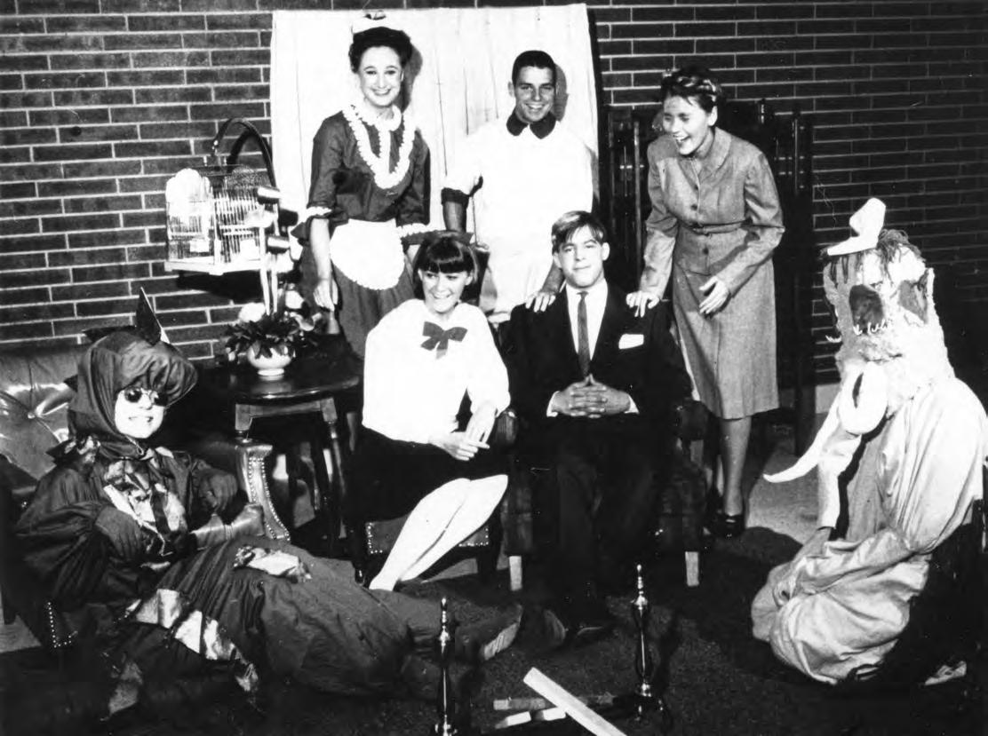 Performers in Hinkley’s theatrical arts program pose for a photo while dressed in costume for the 1965 production of “Skin of our Teeth.”