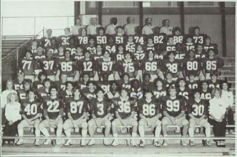 The 1986-1987 varsity football team photo. Steed is located in the 6th row, third from the left.