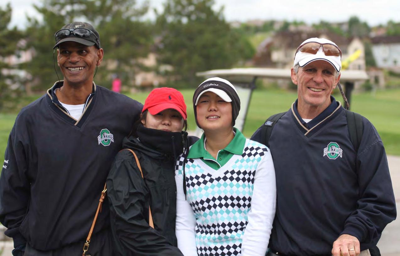 Seung Ha Choi, in white, posing with her coaches after winning the 2011 Class 5A girls golf state title.