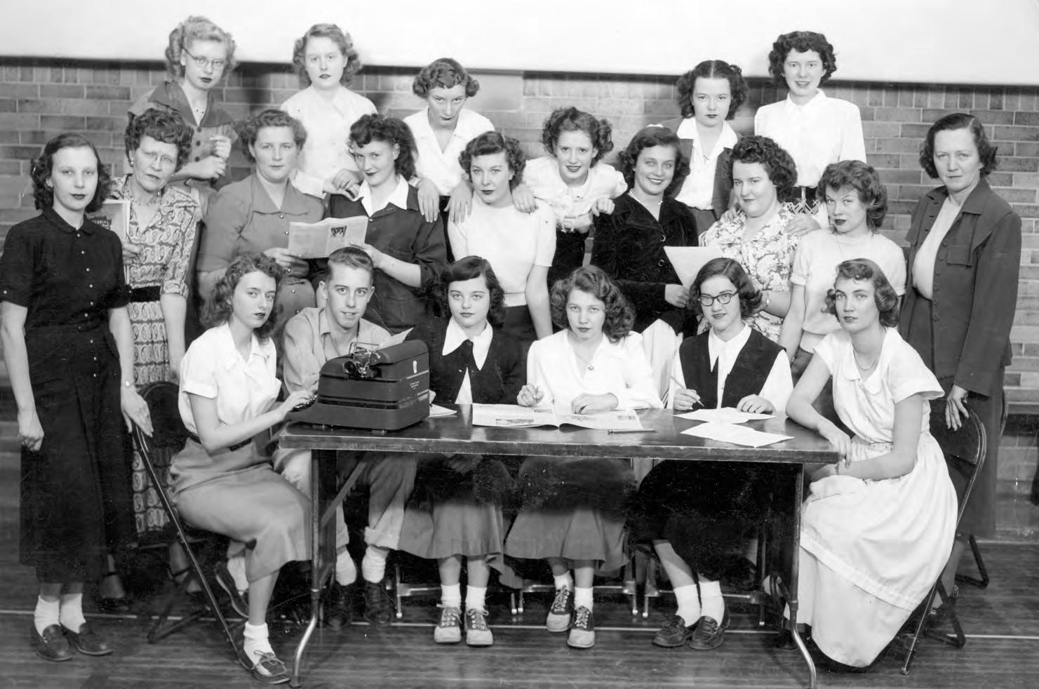 The 1949 staff of William Smith High School’s “Tribune” for a group of students from Kenton Elementary School newspaper pose in a group photo. during a 1984 pep rally.