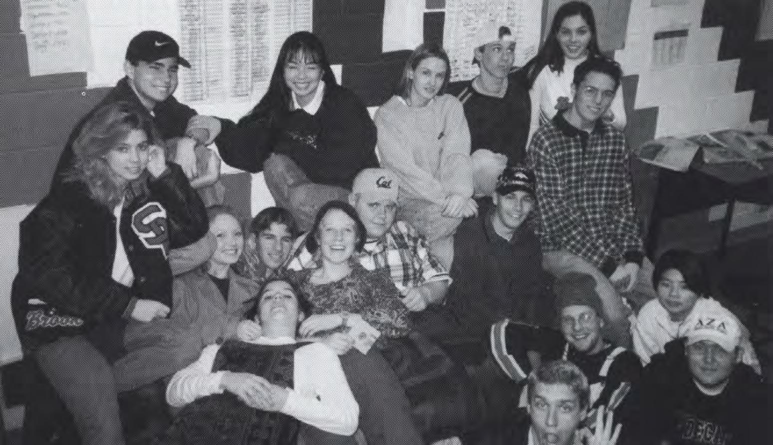 The spirit squad leads the student body in a cheer during a pep rally in 1988.