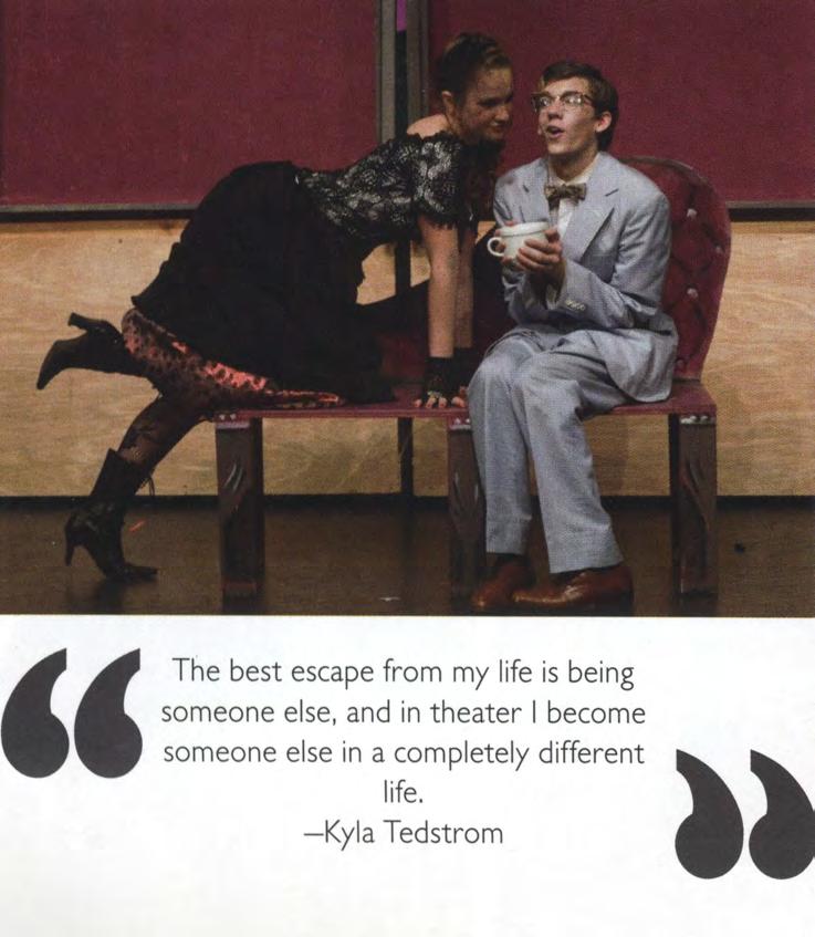 Two performers in the 2011 spring play at Eaglecrest High School (Courtesy of Eaglecrest High School yearbook) members at Overland High School in 2009 performing “Romeo and Juliet,” by William Shakespeare. of Overland High School yearbook) Central High School. of Aurora Central High School yearbook)