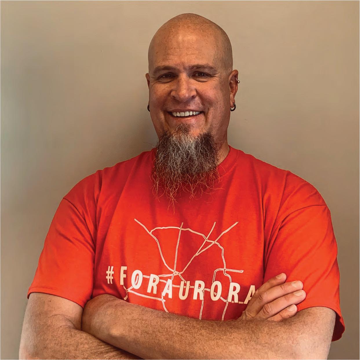 Scott Bloyer is the founding lead pastor at Elevation Christion Church in Aurora. Bloyer was born and raised in Aurora, graduating from Rangeview High School. After living in various locations around the U.S. throughout his 20s, Bloyer and his wife decided to start a church in their hometown in 2010. Elevation began meeting in Dalton Elementary School and today the church is located along East Alameda Parkway. Bloyer explained when his religious path began, “I was not a person of faith for most of my life . . . not really involved in church at all until my early 20s. I had a bad night and ended up with stitches in my face. . . Just in that moment I felt the need to respond to the love of Christ. I got down on my knees and asked God, ‘Okay, if you’re real, we got to gure this out.’ So, I gave my life to Christ.” Bloyer described Elevation Christian Church’s congregation as, “We are very diverse in age here, very diverse in cultural backgrounds, very diverse in race. I grew up here, and I knew Aurora was a melting pot of community. So, I never wanted to start a church that was just a group of people who looked like me and sounded like me.” When talking about the relationship between his church and its place in the city of Aurora, Bloyer commented, “We believe that the church should be there in the community in good times and bad. Because this is my neighborhood, I have a little more a nity to say, I really want to be a part of how are we going to make things better in our city and our community.”