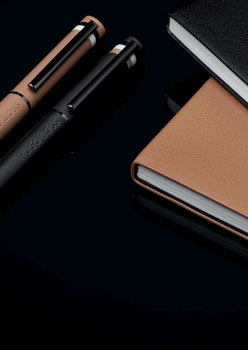 Sponsorship of cultural events is a further key area of brand communications, with the group seeking to create common ground between art and fashion with respect to design, aesthetics and creativity. The HUGO BOSS writing instrument line was launched in 2015 and has quickly become a force to be reckoned with on the premium writing market. Approaching this segment with a fashion house point of view, the HUGO BOSS line offers perfectly crafted and performant products, while focusing on innovative designs. The full range entails a matching writing accessories line, including notebooks, folders, and pen pouches, as well as an assortment of electronic products, consisting of powerbanks, earphones, speakers, and a wine bottle opener. The assortment is completed with lifestyle accessories, including yoga mats and resistance bands, converting sports equipment into true fashion statements.