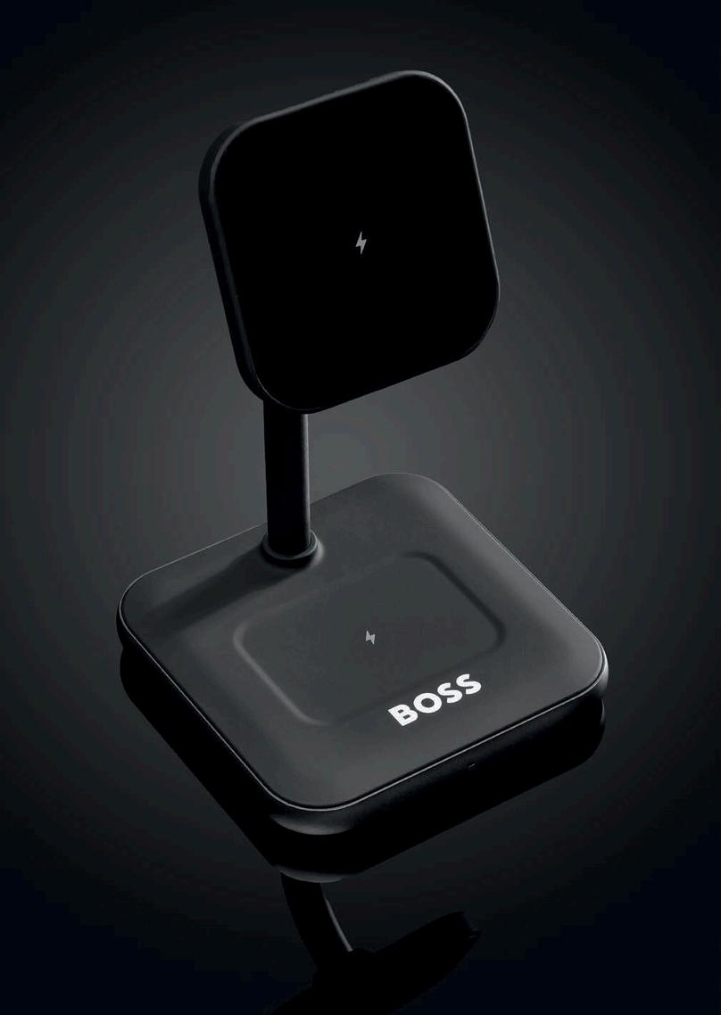 Iconic magnetic phone chargers are delivered in a BOSS gift box.