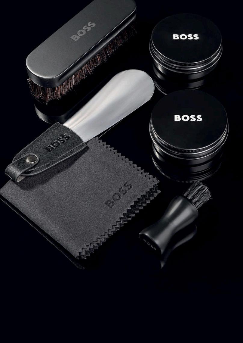 The Shoe-care set is delivered in a dedicated BOSS gift box.