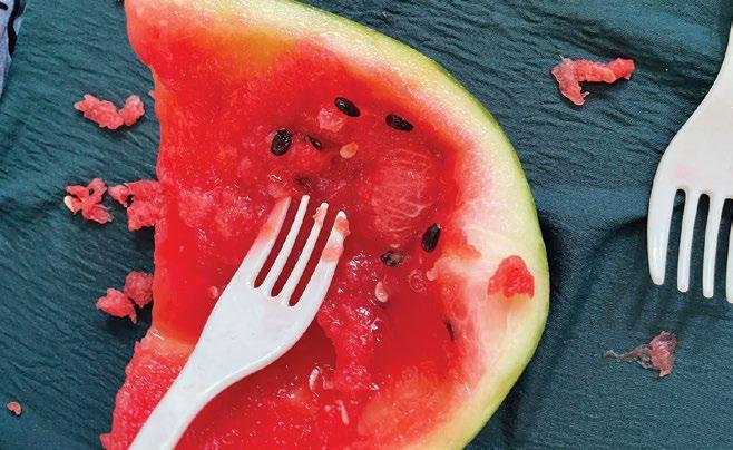 Inspired by our success, we ventured further into juicing and chose a succulent watermelon as our next adventure. Our hands became sticky and wet while taking turns to scoop and shape the juicy fruit, enjoying its coolness and crunchiness, but this only added to the joyous experience.