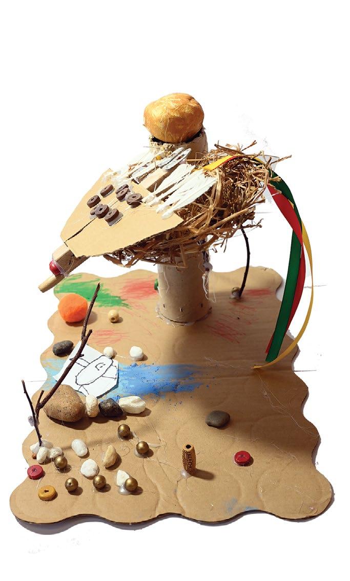 We then revisited sculpture and construction and begun our journey into creating our own micro ecosystem. Again, using a multitude of materials and loose parts, we built our worlds up in layers, taking our time to think and discuss each phase of our project. We started by creating birds, then we asked, where do birds live?