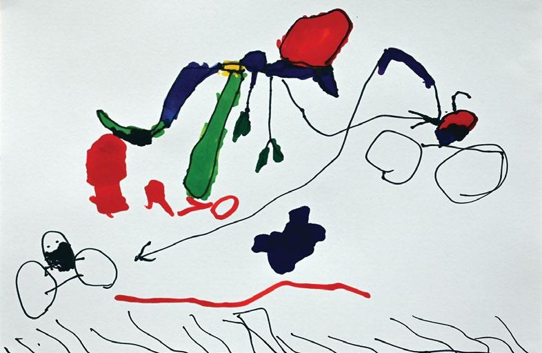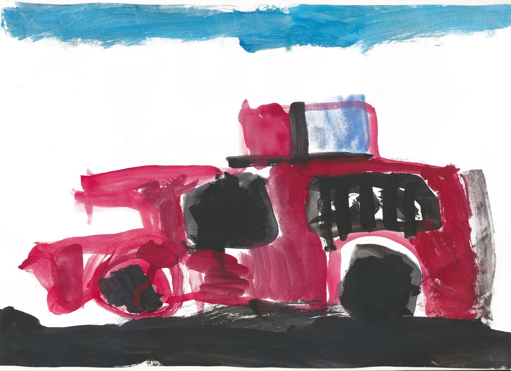 “Red bird looking at the rain and clouds. The big tree has berries” - Kaleb