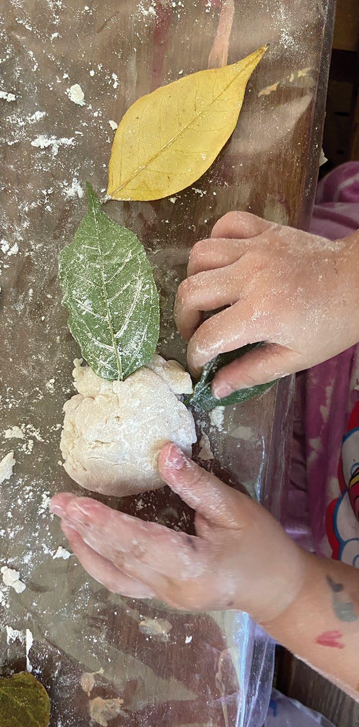 Chloe approached Maxine one day with an idea—an idea that spread throughout the classroom and inspired excitement: to make a leaf dress for her fifth birthday. After a few interruptions, celebrations, and well-deserved holidays to spend time with family and friends, we got back on track. The children never forgot about their love of leaves during this time, always collecting them on their way up to the classroom in the morning or during time spent outdoors.