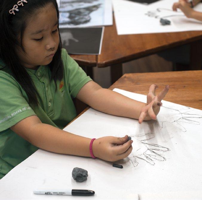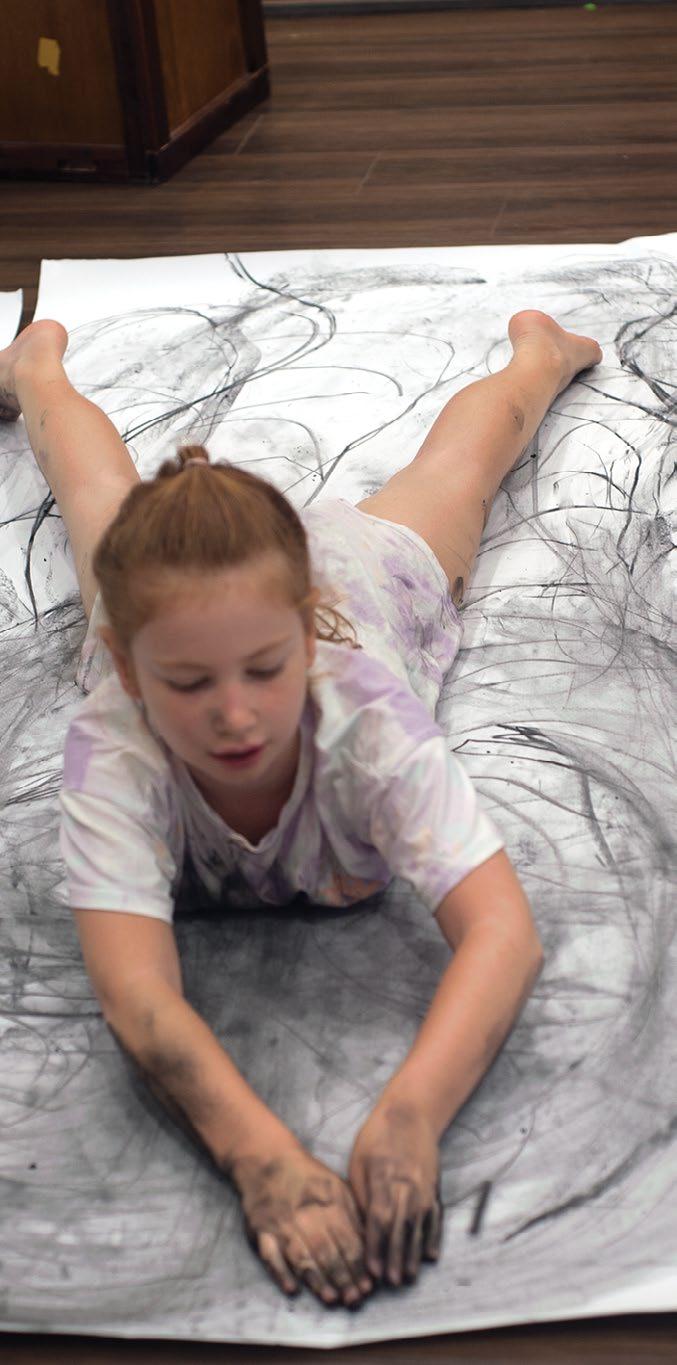 Lower Primary began their journey with charcoal. Knowing that they were exploring their bodies, we looked at kinetic drawings, in which you drew your bodies through movement on large pieces of paper. Using different densities of charcoal, from light willow sticks to the pitch blackness of compressed charcoal, revealed a variety of results. The inclusion of kneaded erasers likewise opened up a world of drawing through erasure.