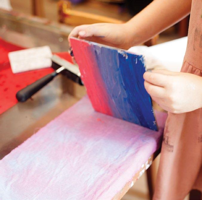 The children really love to cut, and I was both amazed and delighted by how they immersed themselves in the world of relief printing. Whether it be with pencil or wood carving tools, they pressed, cut and carved animals, houses and abstract landscapes. The prints leaned naturally into monotypes, with paint applied freely to the boards to stunning effect. This experience stayed with them when we moved into fabric dyeing, and their linen sheets became an expression of block printing and fabric painting. A relationhip with mark making has deepened in something I hope will stay with you always.