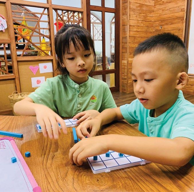 In Lower Primary, our Mathematics sessions involved a wealth of handson activities. We offered a variety of manipulatives to support the children in constructing their own learning experiences. Through repeated engagement with concrete materials, they developed a solid foundation in understanding mathematical concepts. Through engaging with manipulatives, the children not only enhanced their mathematical skills but also expanded their vocabulary and problemsolving strategies. By actively discussing their thought processes, we fostered critical thinking and encouraged them to explore alternative perspectives. Our goal was to empower the children to discover multiple approaches to problem-solving, emphasizing that there can be various paths leading to the same solution.