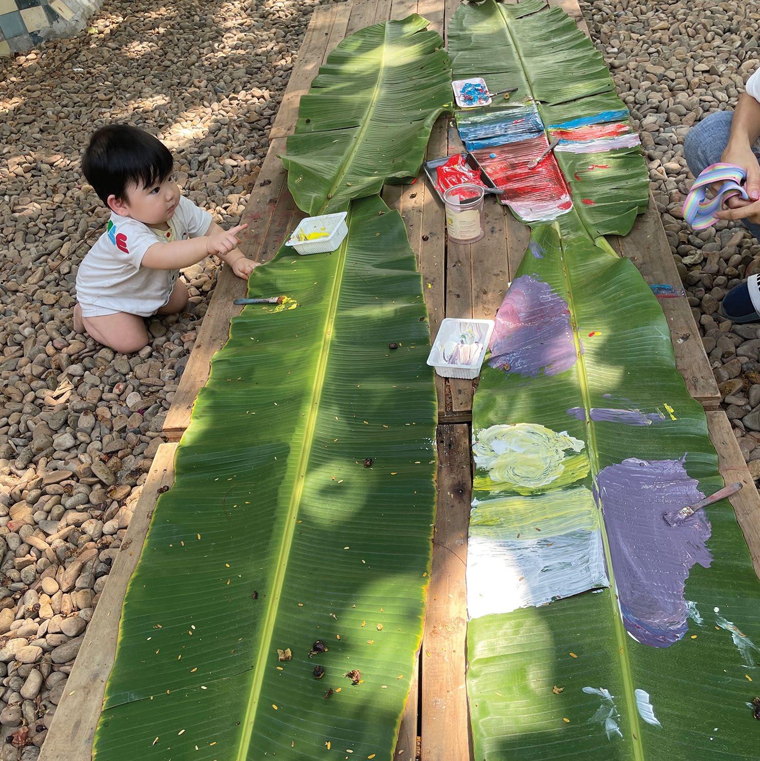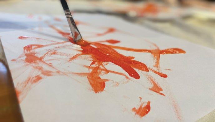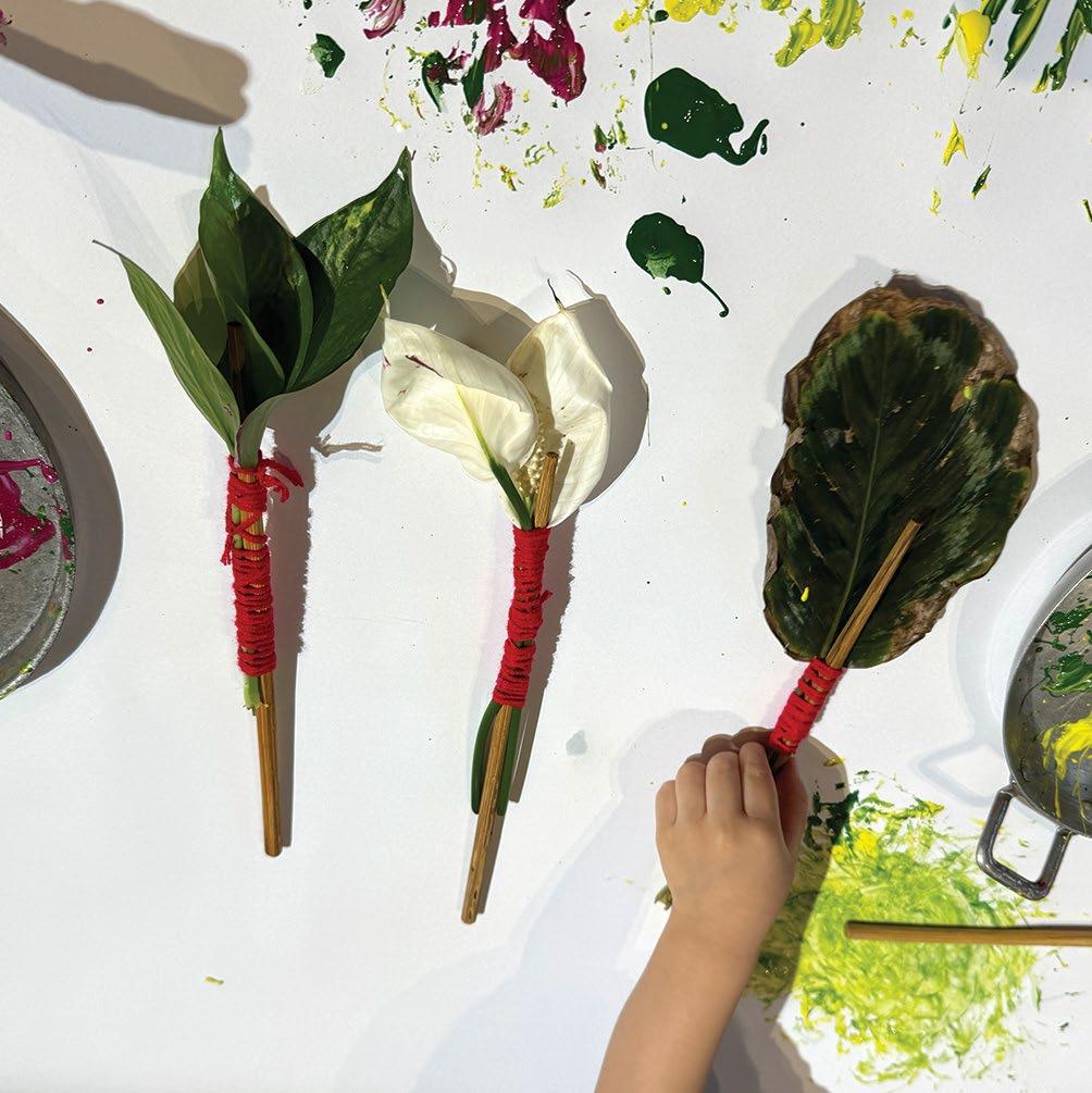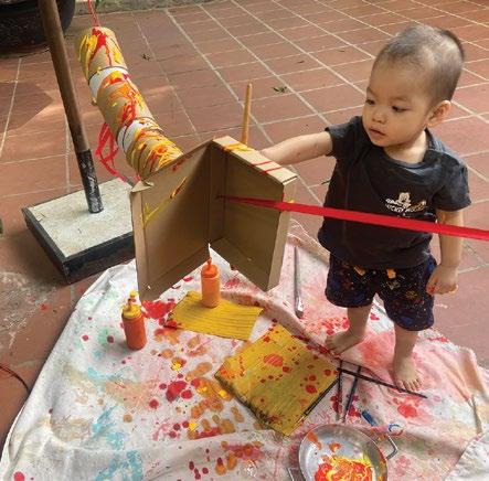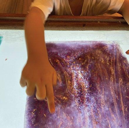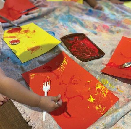 The children approached paint with a sense of uncertainty, taking time to develop a relationship with it. Initially using paintbrushes to make marks, we noticed over time how the children’s confidence and curiosity grew. They were gradually enjoying the textures on their hands and feet, and delighting in the discovery of using other tools to leave unique imprints and marks.