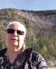 Debbie Nagano devant le Ë`dhä` Dä`dhë`cha, le glissement de terrain Moosehide Slide faisant partie des sites culturels désignés à Dawson.