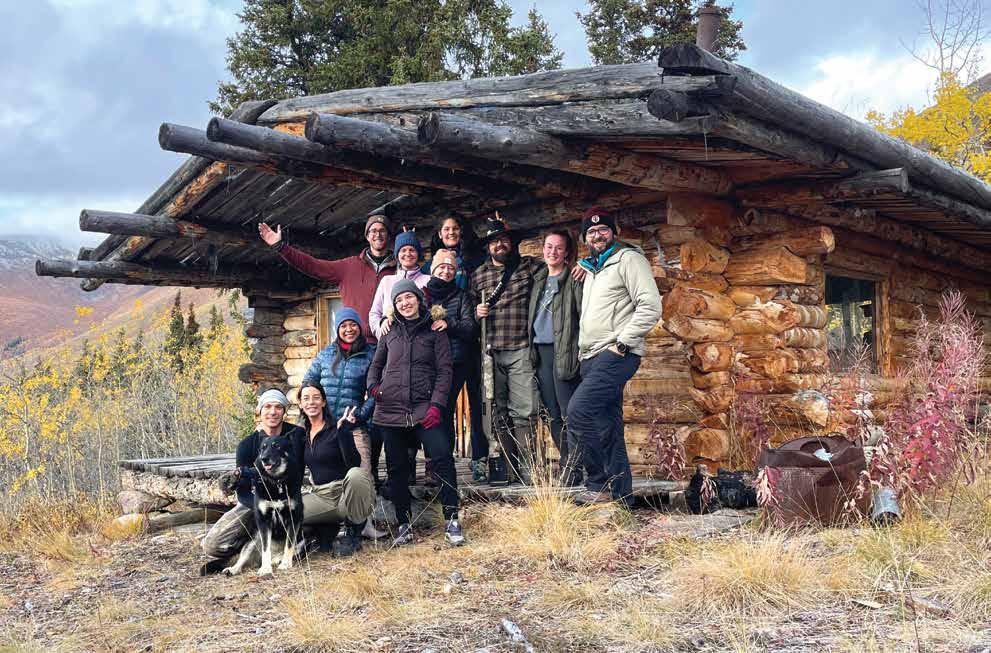 L’automne rayonne de mille couleurs au Yukon! Nala, Benjamin Eisele, Pamela Battiston, Diana Romero, Gwendoline Le Bomin, Alexia Desoblin, Géraldine Debuysscher, Léo Kaese, Laura Collin, William Le Dean, Vanessa Rousseau et Florian Bosc (de g. à dr. et de bas en haut), en ont profité, fin septembre, pour faire une virée de canot-camping jusqu’à la cabane du film Le Dernier Trappeur (2004) de l’explorateur français Nicolas Vanier, aux abords du lac Fish.