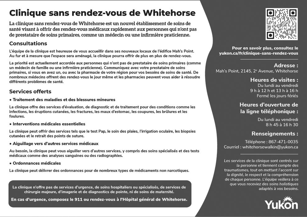 Dans un communiqué publié le 1er mai, le gouvernement du Yukon, en collaboration avec les Premières Nations du Yukon et les partenaires du secteur de la santé, rapporte qu’il commencera immédiatement à travailler à la mise en place de l’office de la santé.