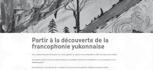 L’élaboration de cette forma tion a également permis de rassem bler sur une même plateforme toute l’information pertinente à connaître sur la francophonie du Yukon.