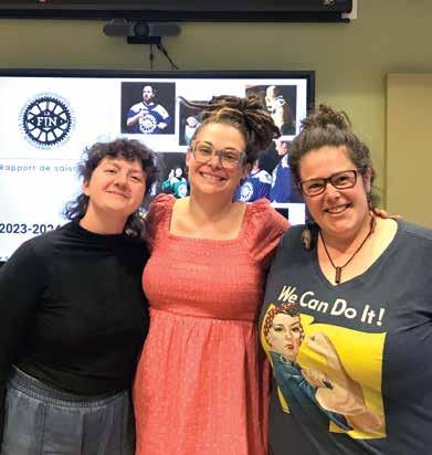 Le 16 mai dernier, la Fabrique d’improvisation du Nord, seule ligue d’impro francophone au Yukon, a tenu sa toute première assemblée générale. Le premier conseil d’administration de ce nouvel organisme communautaire est désormais composé d’Anne-Sophie Berthelot, à la présidence (à dr.); Lydia Veillette, vice-présidente (à g.); Lydia Jolin-Lessard, trésorière (au centre) et Camille Hamon, administratrice responsable des communications et de la promotion (absente de la photo).