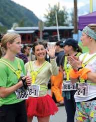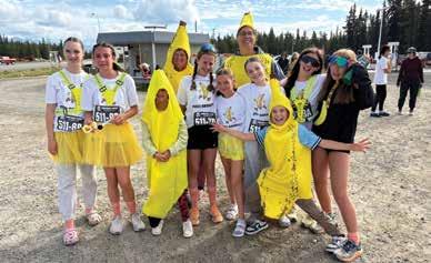 Des centaines d’athlètes ont parcouru, en solo ou en équipe, le trajet entre Skagway et Whitehorse, les 5 et 6 septembre derniers. On voit ici Bernadette Roy (jupe rouge), qui a obtenu cette année la Senator’s Cup, récompense attribuée lorsqu’une personne a accompli, à travers les années, chacune des dix sections de la course. Bravo! p. 19