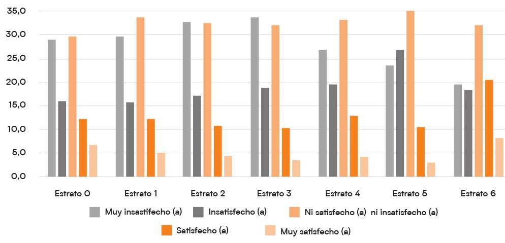 GRÁFICO 5: En una escala de 1 a 5 donde ¿Qué tan satisfecho se siente con la forma en que la democracia funciona en Colombia? por estrato socioeconómico p. 226