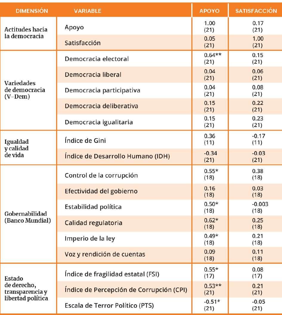 GRÁFICO 16: Apoyo a la democracia vs. Satisfacción con la democracia p. 250
