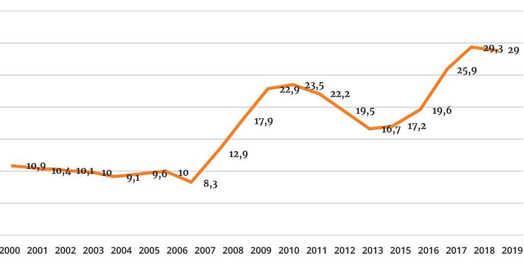 GRÁFICO 4: Tasa de homicidios por cada cien mil habitantes en México 2000 - 2019 p. 332