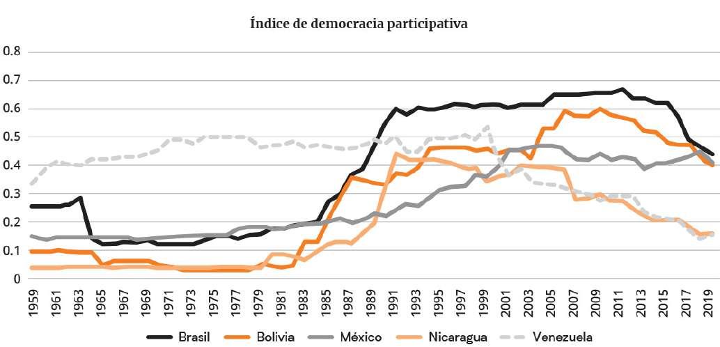 Pero otras voces emergen. El estancamiento económico a partir de 2014, implicó un nuevo aumento de la pobreza y de la pobreza extrema, así como una disminución del ritmo de reducción de la desigualdad. Sin crecimiento económico y sin un compromiso sostenido de los Estados para garantizar los derechos sociales, atestiguamos a partir de 2019 el incremento del malestar y de la insatisfacción de la población hacia ese conjunto difuso de instancias que condicionan el bienestar. Aun cuando los actores políticos pueden ser identificados, es cada vez mayor el descontento hacia todo ese conjunto difuso de agentes que intervienen en la adopción de medidas políticas, económicas, culturales, territoriales o ambientales. Se percibe que las instituciones no actúan en función de la vigencia de los derechos de las personas, ni en razón del cuidado del ambiente, sino como garantes de intereses particulares. En este contexto hay que situar la crisis de la democracia en América Latina, que no implica rupturas catastróficas, pero sí debilidades estructurales y riesgos de caudillismo, corporativismo, clientelismo, autoritarismo o cooptación de las instituciones. Situaciones que adoptan formas específicas en lo local. Sin embargo, hay signos que muestran posibilidades para salir de lo que parece un destino arraigado en nuestras sociedades. Muchas constituciones recientes –o reformas constitucionales– dan testimonio de la voluntad de cambio y de la conciencia de la necesidad de reconocer y garantizar los derechos de ciudadanía. Cientos de instituciones participativas se han creado en las tres últimas décadas en un notable proceso de experimentación democrática. Miles