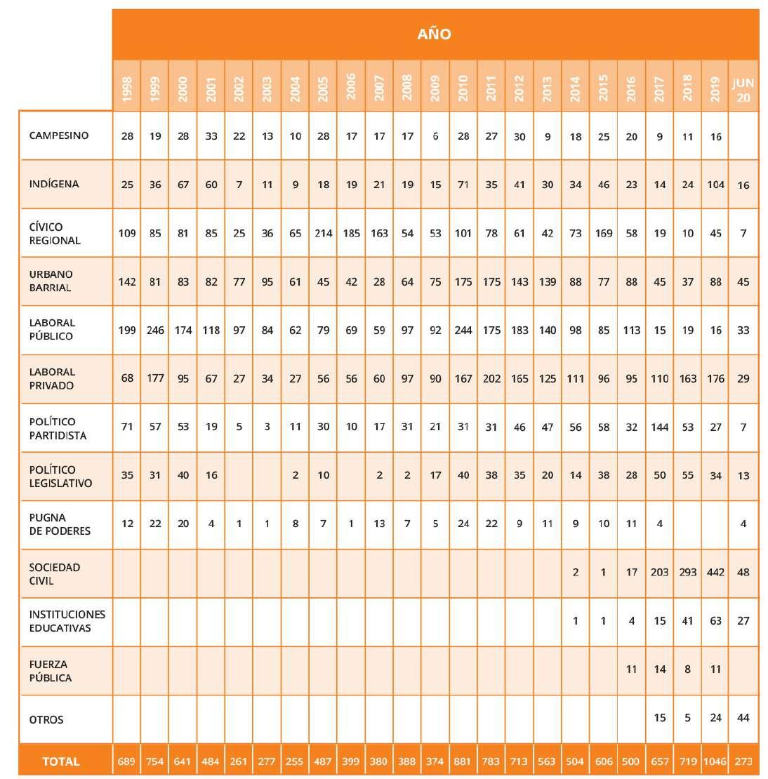 de movilizaciones populares tienen lugar cada año, mostrando la capacidad de resistencia de poblaciones y la disposición de ciudadanos a hacer oír su voz. Aun cuando estos esfuerzos son estigmatizados y quienes participan en ellos continúan siendo víctimas de agresiones.