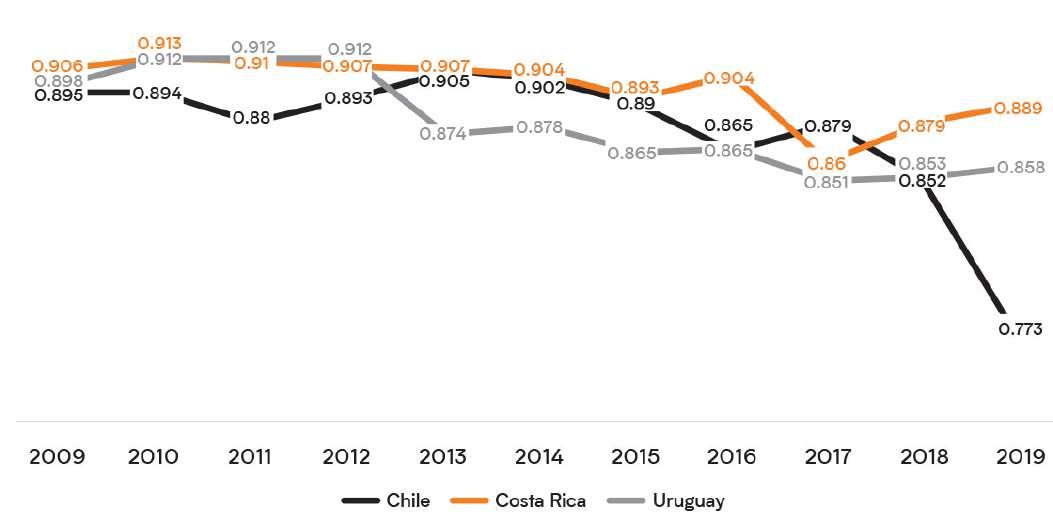 GRÁFICO 8: Índice de Gini en Bolivia, Colombia y Ecuador (1995-2019) p. 412