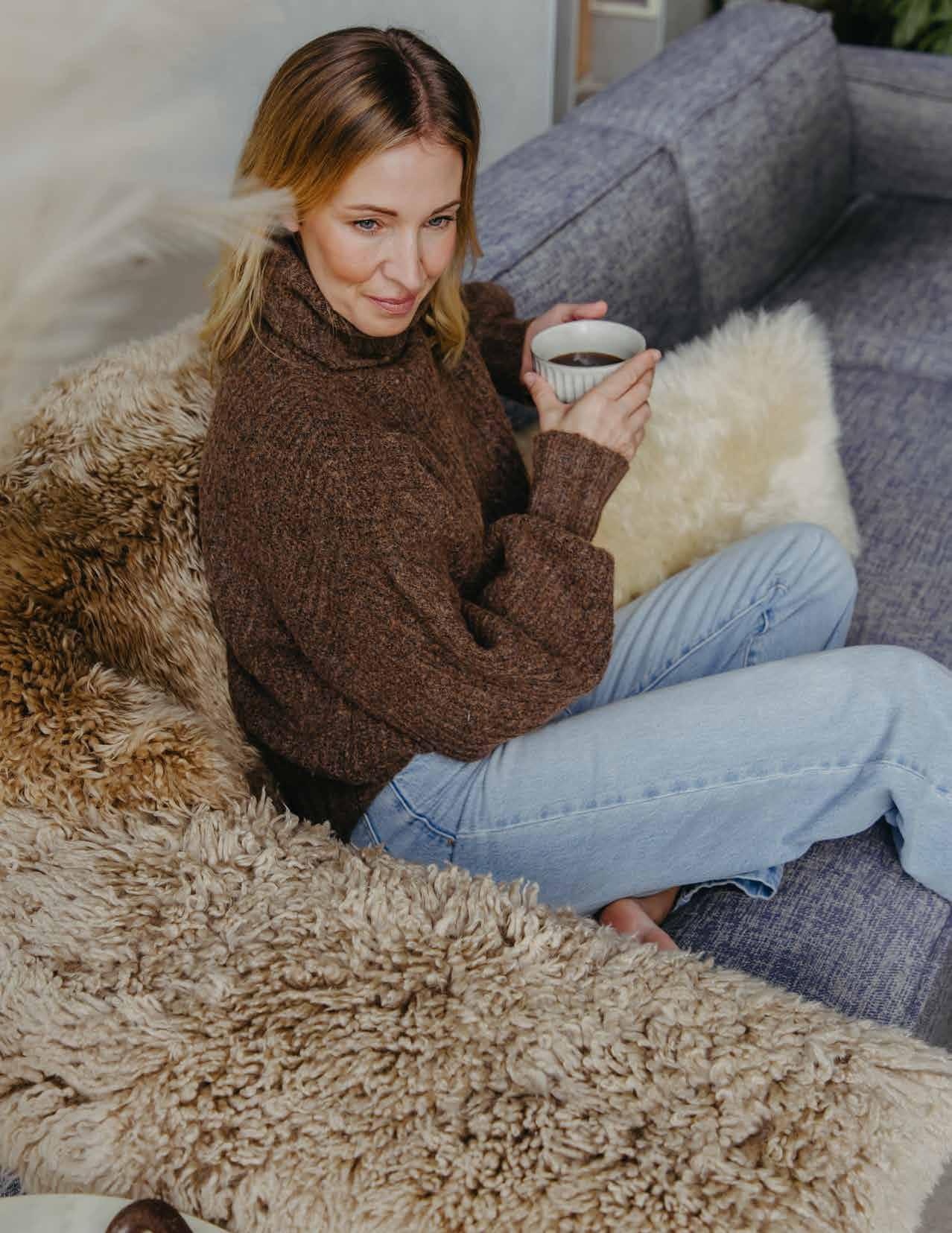 • Sheepskin enhances interiors with natural shades and organic textures, blending seamlessly into various décor styles.