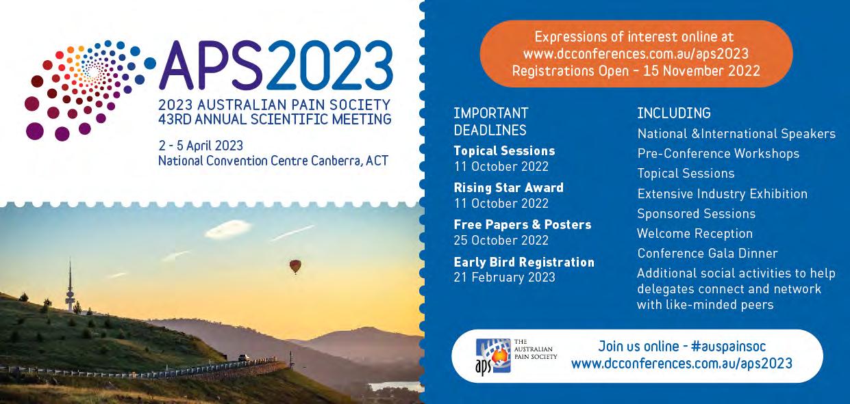 Looking forward to seeing all the action from the conference on twitter, the hashtag to use is #AusPainSoc.