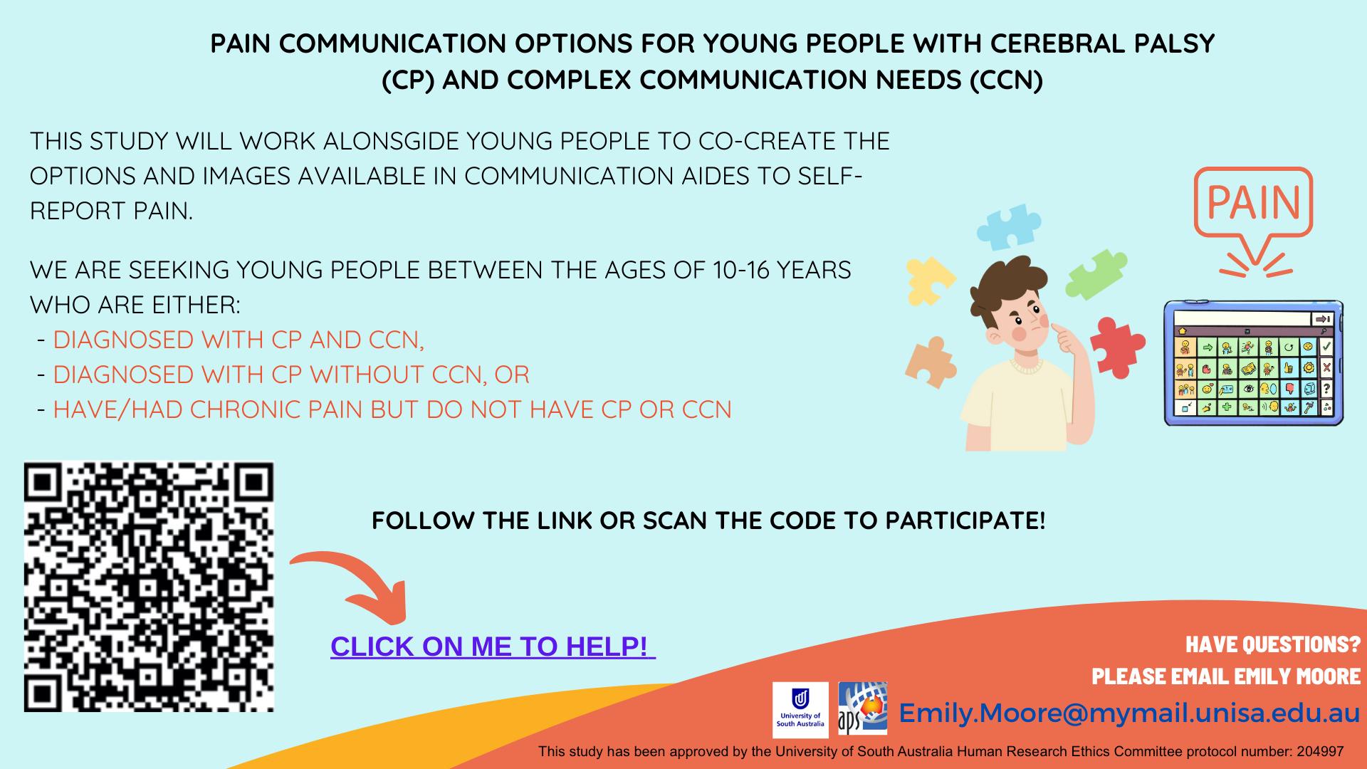 This multidisciplinary workshop commences with evidence showing links between sensory modulation and pain and treatment options, followed by research focused on pain experiences of children with cerebral palsy and developmental disabilities.
