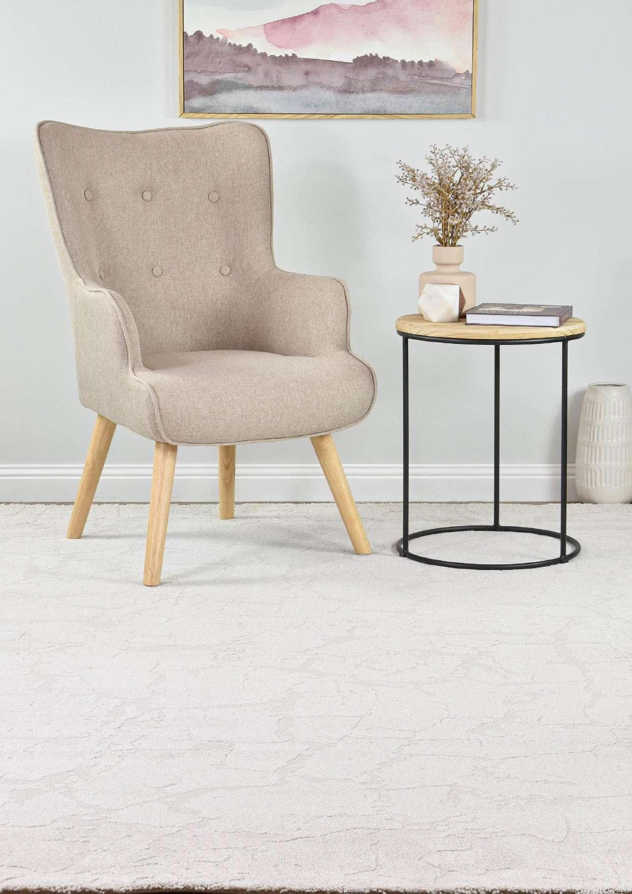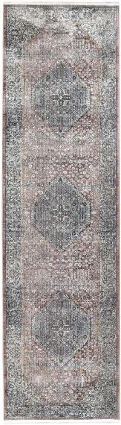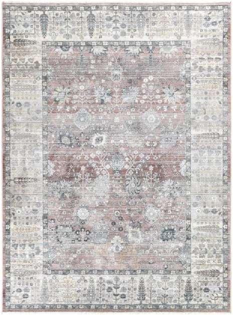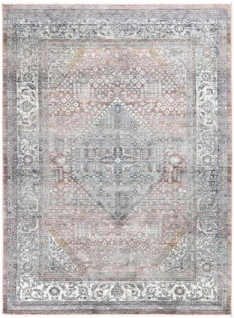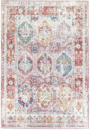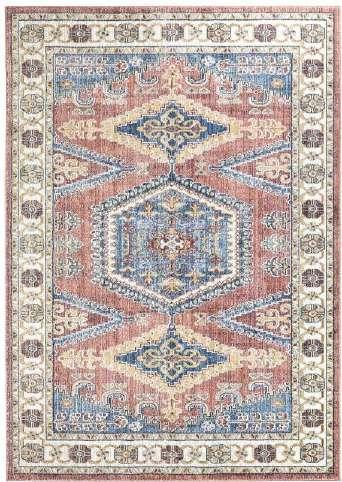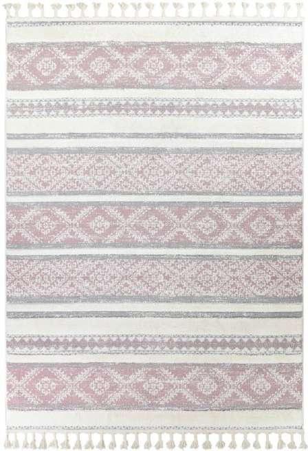 Made in Turkey, this rug features a muted patternin soft pink tones that create a warm and inviting atmosphere.The soft touch pile feels luxuriousunderfoot, while the small fringe adds a charming touchof texture.