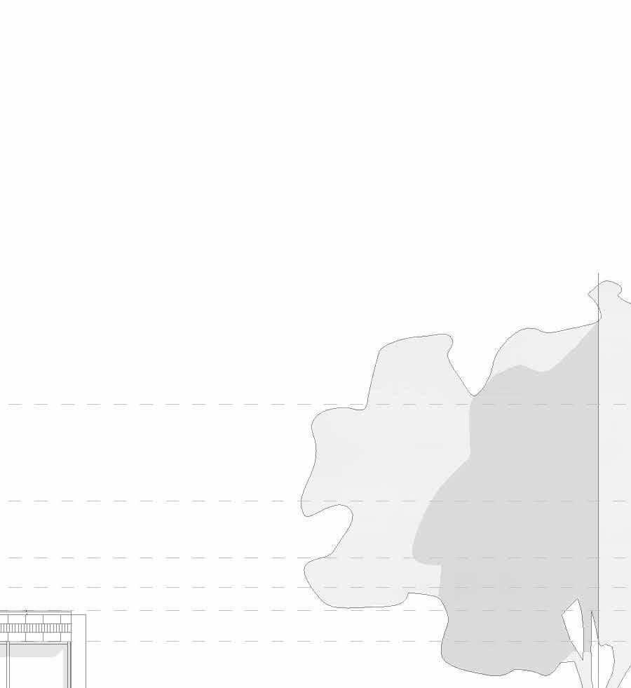 T.O. Existing Structure: 36' T.O. Central Axis Point: 30' T.O. Primary Axis: 26' - 6" T.O. East Wing Parapet: 14' - 4" Addition Level: 0' Existing Level: 7' East Wing Ceiling: 12' Existing Basement: -3' - 8" Bottom of Footing : -8' North Grade: -1' - 6" South Grade: 5' - 4" FP T.O. Central Axis Point: 30' T.O. East / West Wing Parpet: 14' - 4" West Grade: -2' - 6" East Grade: 1' - 9" Addition Level: 0' Auditorium Ceiling: 16' T.O. Auditorium Parapet: 18' - 4" T.O. Secondary Axis: 22' - 8" Bottom of Footing: -8' East / West Wing Ceiling: 12' FP 1/16" 1'-0" 3 Section 1 1/16" 1'-0" 2 Section 2