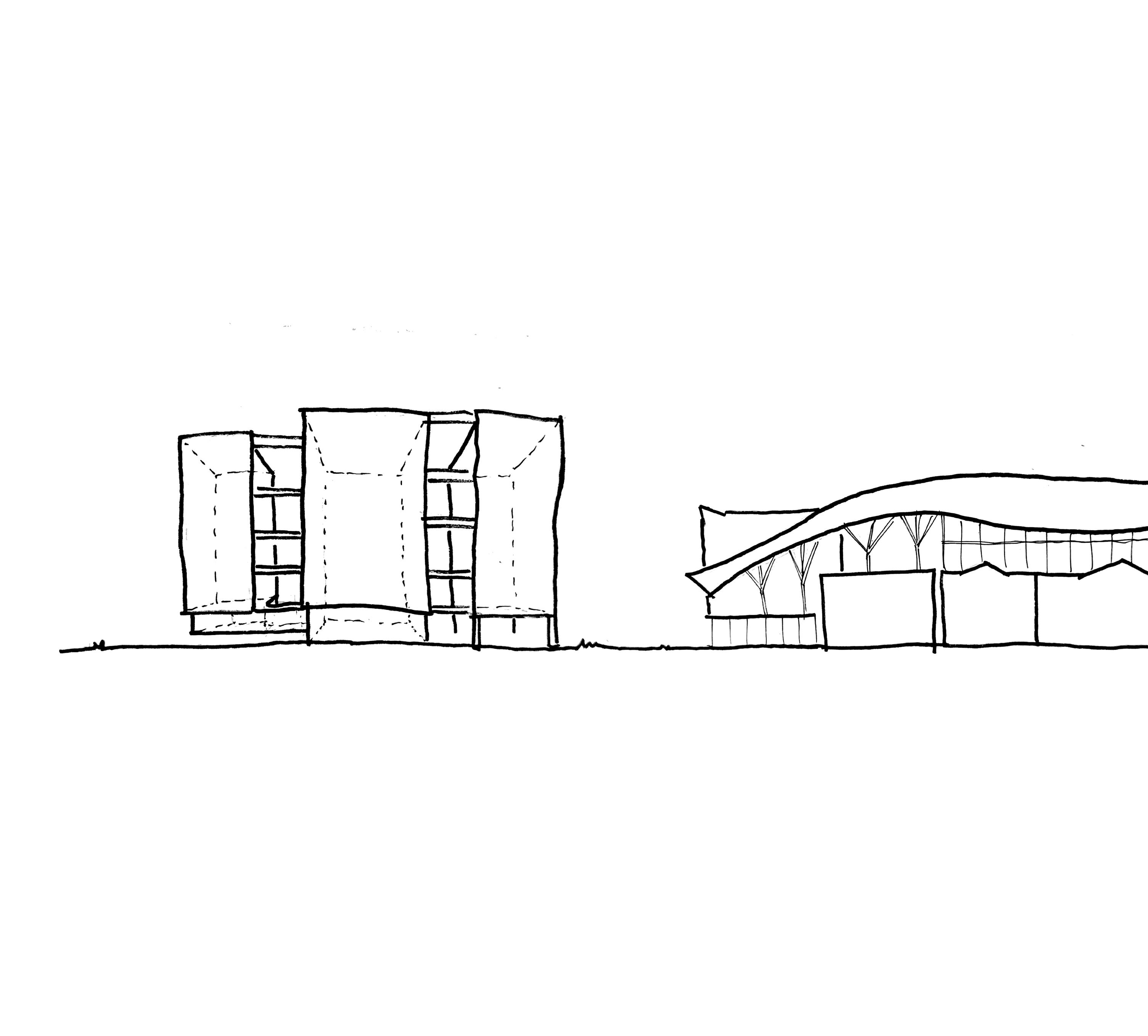 In a complex site weaving through the rich context of New Orleans’ Warehouse District sits this gallery, designed to elegtantly house the artwork owned by the Besthoff family. The design preserves historical facades and structure and protects them by floating the canopy roof above. The curves of the roof respond to the program and circulation below, with the weight supported by a network of tree columns. Rainwater captured by the canopy flows down through the valleys and can be captured for reuse watering the gardens atop the roofdecks making up the outdoor entry sequence.