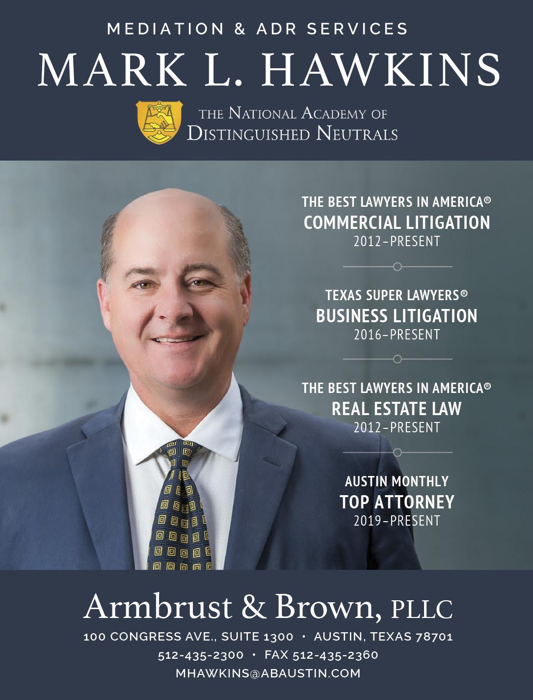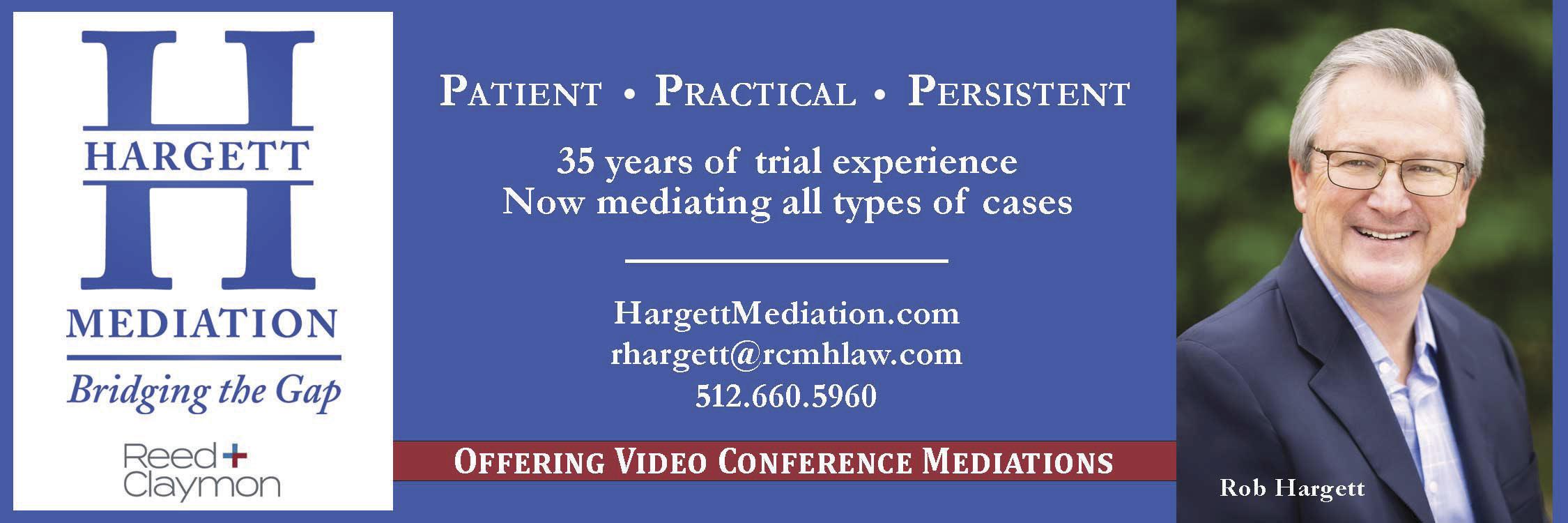 The views, opinions, and content expressed in this pub lication are those of the author(s) or advertiser(s) and do not necessarily reflect the views or opinions of the Aus tin Bar Association membership, Austin Bar Association Board of Directors, or Austin Bar Association staff. As a matter of policy, the Austin Bar Association does not endorse any products, services, or programs, and any ad vertisement in this publication should not be construed as such an endorsement.