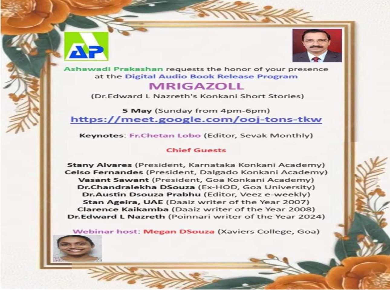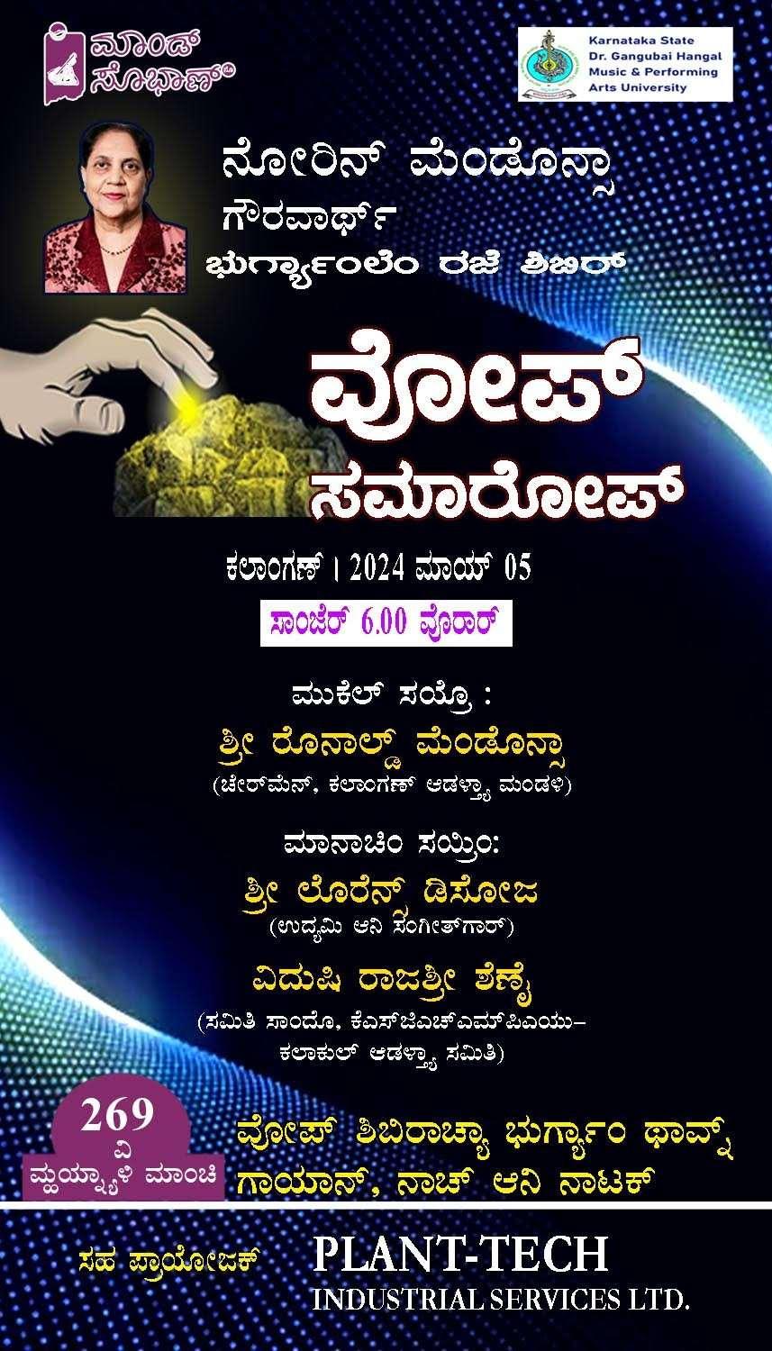 19 ವೀಜ್ ಕ ೊಂಕಣಿ ಮೆಾಂಡೊೀನಾ , ಕಾರ್ವದಶವ ಓಲಿ್ನ್ ಪಿಾಂಟೊ, 21 ಆಯೀಗಾಾಂಚೊ ಸಾಂಚ್ಯಲಕ್ರ ಪಾವ್ಕಯ ಡ್ಚಸೊೀಜಾ ಹ್ಯಜ್ರ್ ಆಸ್ತಲಯ . ರಚ್ಯಡ್ವ ಮರಾಸಾಕ್ರ ತಚ್ಯ ಸಾಮಾಜಿಕ್ರ ಆನಿ ಕೊಾಂಕಿಯ ವಾವಾರ ಖಾತ್ರರ್ ತಕೊಡ ಫಿಗವಜ್ ಆನಿ ಪ್ಣ್ಯೆಟ್ಲಕಾ ತಫೆವನ್ ಸನ್ನ್ ಕ್ಲ್. ನಿರ್ರತ್ು ಶಕ್ಷಕ್ರ ಕವ ರ್ಲೀರರ್ನ್ ಮರಾಸಾನ್ ಮಾನ್ ಪ್ತ್ರ ಅಪಿವಲಾಂ. ಕವ ಜೊೀಜ್ವ ಲಿಗೊೀರ ಡ್ಚಸೊೀಜಾ, ಸ್ತರತ್ಲ್ ಆನಿ ಕವ ಡ್ಲ್. ಜೊಯೆರ್ ನ್ಭರನಹ , ಕಿನಿ್ಗೊೀಳ್ಳ ಹ್ಯರ್ಣ ಸ್ತಾಂಕಾಣ್ ಧರುನ್ ಚಲವ್ಕ್ ವೆಲ್ತಯಾ ಕವಗೊೀಷಿಿಾಂತ್ ಸ್ತಮಾರ್ ಪ್ಾಂಚಿ್ೀಸ್ಲ ಕವಾಂನಿ ಆಪ್ಣ್ಯಾ ಕವತ ಸಾದರ್ ಕ್ಲ್ಾ . ರ್ಡ್ಲ್ ಸಾಂಖಾಾನ್ ಲ್ೀಕ್ರ ಹ್ಯಜ್ರ್ ಜಾಲ್ತಯಾ ಹ್ಯಾ ಕವಗೊೀಷಿಿಾಂತ್ ಅತಾತುಮ್ಮ ಕವತ ಇನಮ್ಮ ಕವ ಸಿ.ವ. ಲ್ರಟೊು ಹ್ಯಾಂಕಾಾಂ ಫಾವೊ ಜಾಲಾಂ.. ಕವಗೊೀಷಿಿ ಉಪಾರಾಂತ್ ಆಗಾರರ್ ಗುಮಾುಾಂ ಪ್ಾಂಗಾಾ ಥಾವ್ಕ್ ಆಕರ್ವಕ್ರ ಗುಮಾುಾಂ ಪ್ದಾಾಂ ಗಾಜಿಯಾಂ. ಕವ ಎಡ್ಚ ಕಾಡೊಾಸ್ಲ ತಕೊಡನ್ ಕಾಯೆವಾಂ ಚಲವ್ಕ್ ವೆಲಾಂ ಸಾಂಗ ಧನಾವಾದ್ರ ಪಾಟಯೆಯಾಂ. ಬ್ಯ್ಲ್ಯ