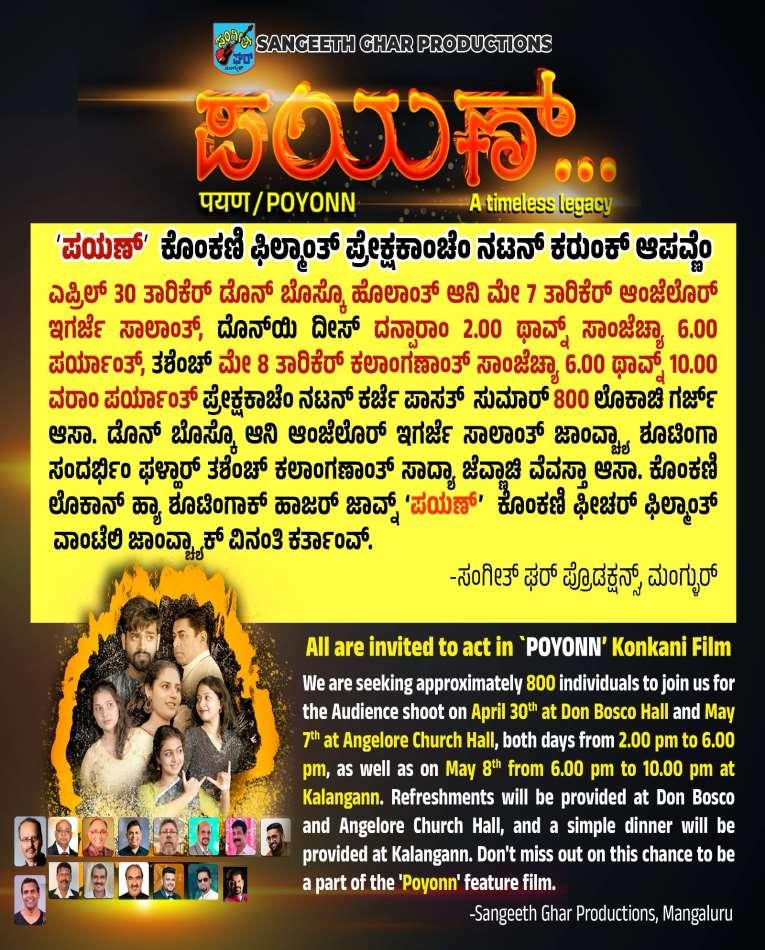 Mangaluru: Shooting of Konkani movie `POYONN’ begins