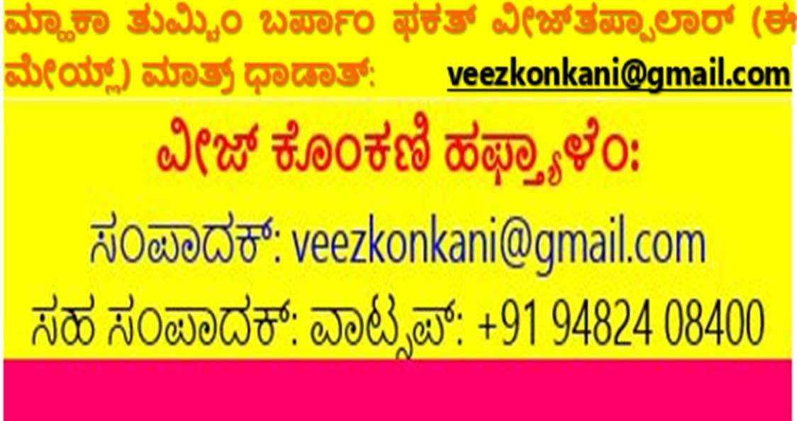 17 ವೀಜ್ ಕ ೊಂಕಣಿ ಚಿ ಅಟ್ಕುವಸಾವ ಕವಗೊೀಷಿಿ ತಕೊಡ ಇಗಜೆವಚ್ಯ ಮ್ಯ್ಲ್ಾನರ್ ರ್ಹಡ್ಲ್ ರ್ರ್ಸ್ನ್ ಸಾದರ್ ಜಾಲಿ. ಎಡ್ಚ ಕಾಡೊಾಸ್ಲ, ರ್ಲೀರರ್ನ್ ಮೀರಾಸ್ಲ, ಪೆದುರ ಪ್ಭು, ಲ್ೀಯ್ಾ ರೀಗೊ ಆನಿ ವನ್ಭೀದ್ರ ಪಿಾಂಟೊ ಹ್ಯಾ ಪಾಾಂಚ್ಚ ಪ್ಣ್ಯೆಟ್ಲಕಾ ಕವಾಂನಿ ಕಾರ್ವಚಾಂ ಪ್ರಮುಖ್ ಪ್ಣ್ೀಷಕಪಣ್ ಘೆತಲಯಾಂ. ಸ್ತವೆವರ್ ತಕೊಡಚ್ಯ ಯುರ್ತ್ರಾಂ ಥಾವ್ಕ್ ಪಾರಥವನ್ ನರತ್ಾ