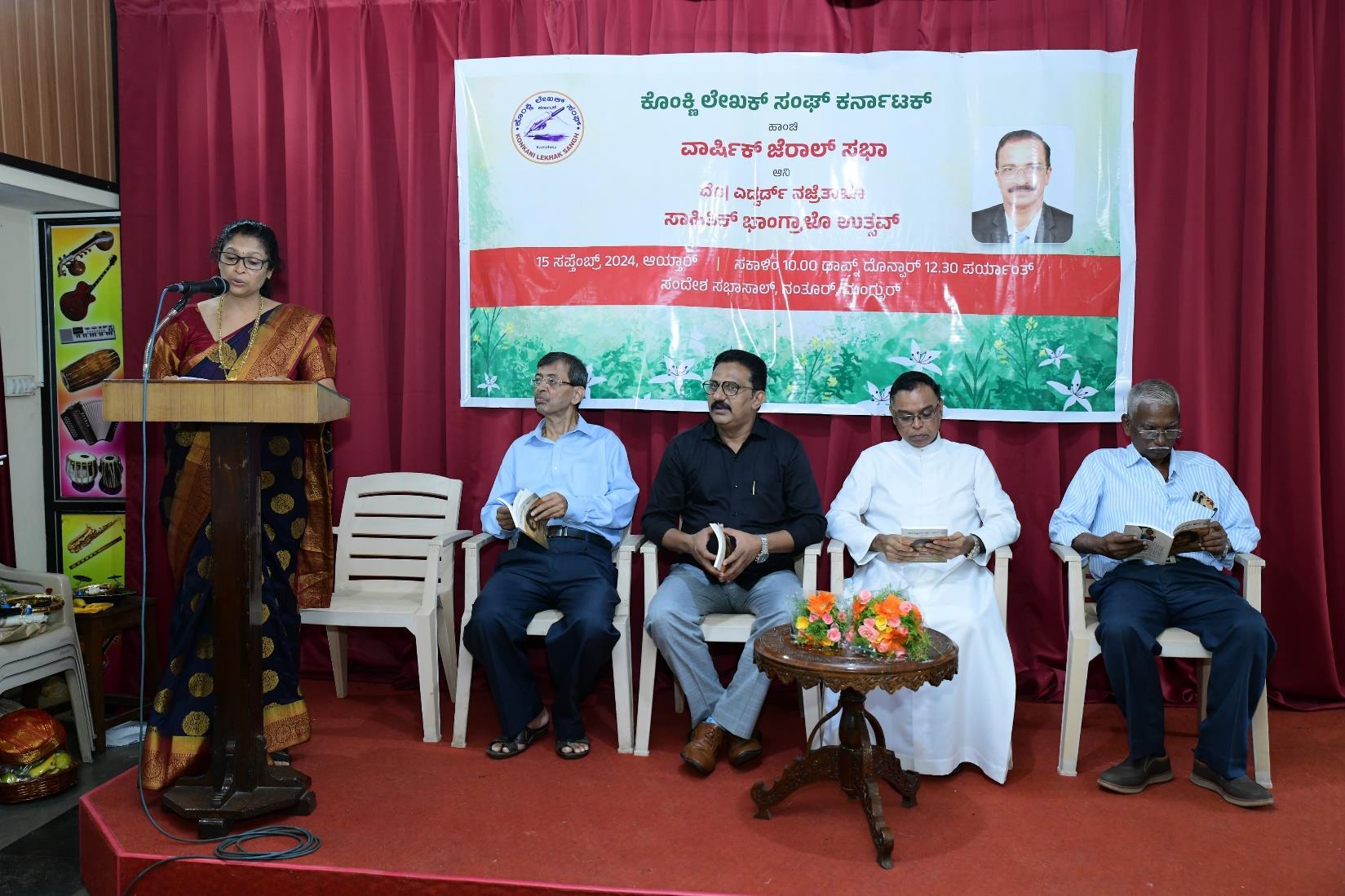 Mr. Richard Moras, convenor of Konkani Writers' Association presented the accounts of the association for the last financial year. Mr. Rony Crasta, Mr. Naveen Bajal and Mrs. Swapna Crasta, the members of Konkani Sahitya Academy were felicitated.