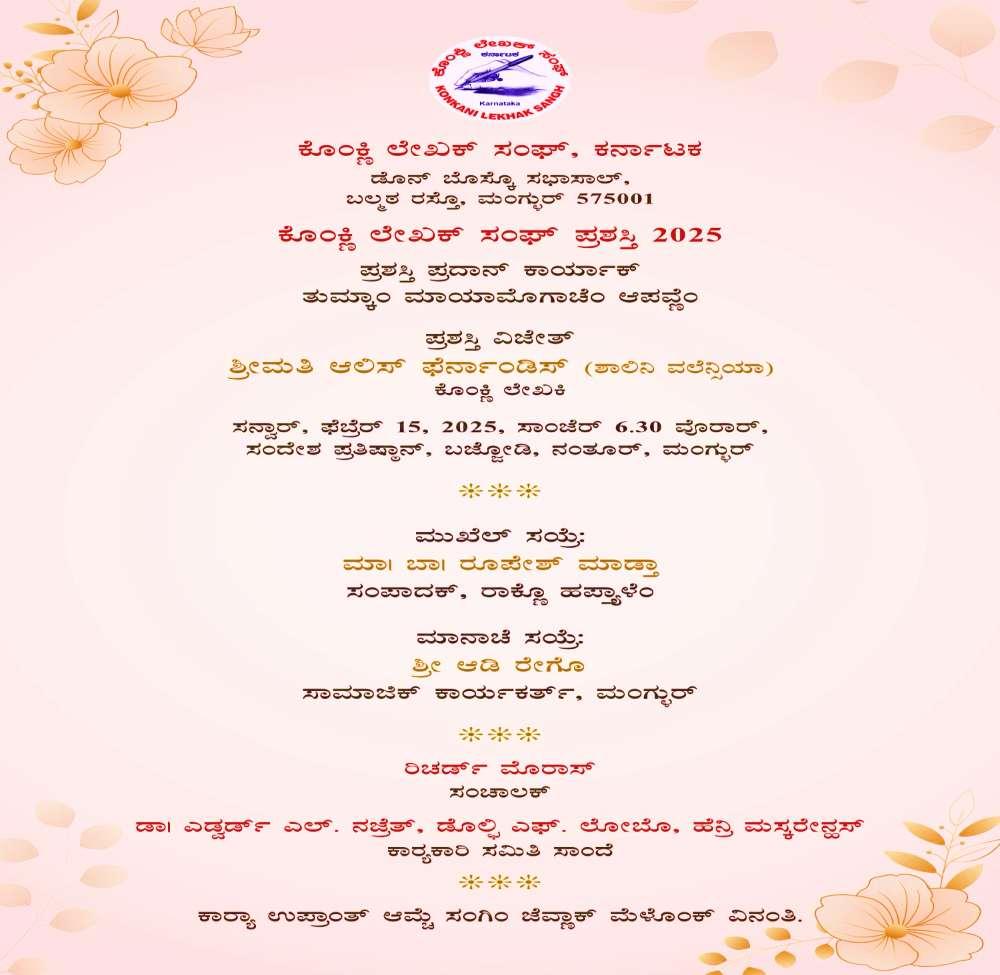 function on February 15, 2025, at 6.30 p.m., at Sandesha Premises, Sandesha Foundation, Bajjodi, Mangaluru.
