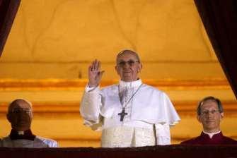 Pope Francis waving to the crowds in front of St. Peter’s Basilica minutes after his election in 2013.Credit...Gregorio Borgia/Associated Press