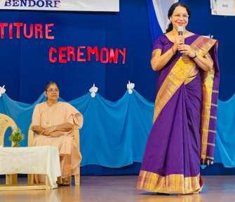 Theleadersweretheninvestedwith their badges and sashes, by the chief guest Prof. Devi Prabha and the Headmistress Sr. Gloria A. C. A touching moment followed when theAlma Mater of the schoolhanded over theschool flagto the student leaders, along withafewwordsofinspiringadvice, urging them to be torchbearers of the institution's ideals and to lead byexample.