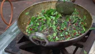 2. In a fry pan add both the chillies with coriander seeds and roast it with little oil.